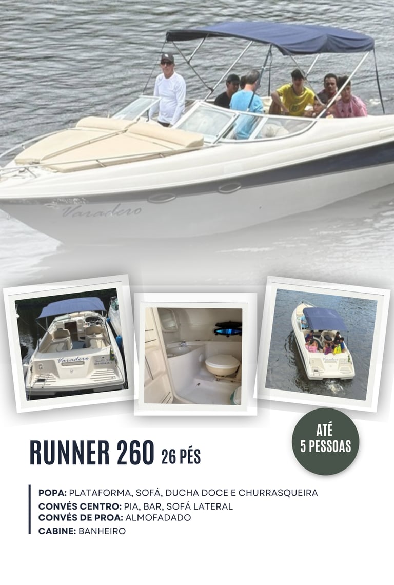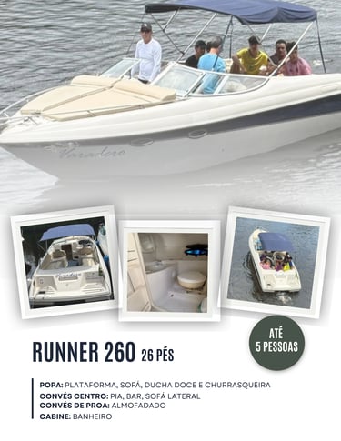 Embarcações exclusivas, de diferentes modelos e tamanhos, com capacidades de 4 até 14 pessoas.