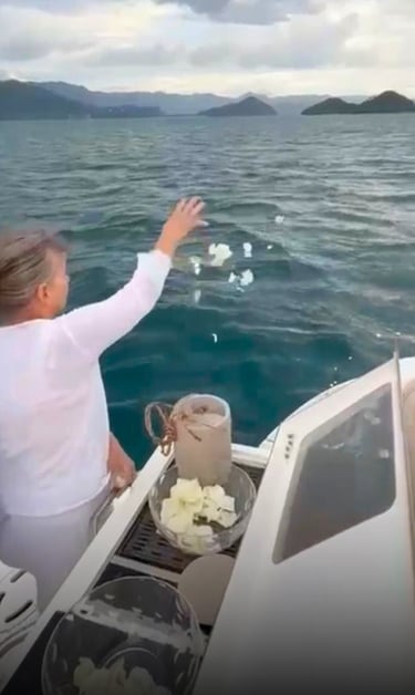 A despedida de uma pessoa querida é sempre carregada de fortes emoções. Quando essa despedida acontece no mar, ela se transforma em um momento de leveza e profunda paz.